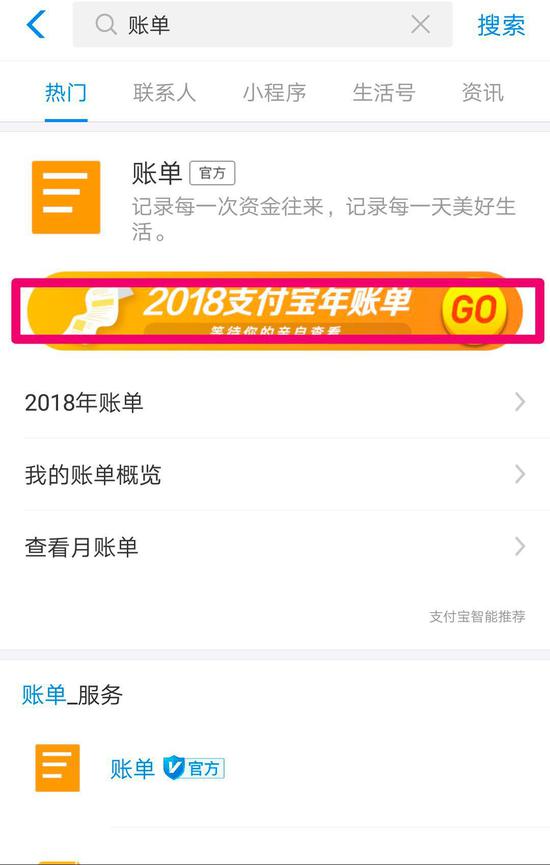 如何看?打开支付宝,搜索“账单”↓↓↓