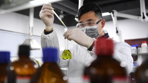 优睿赛思(武汉)生物科技公司总经理吴海博士在B细胞培养实验室进行B细胞原代培养。 记者高勇 摄