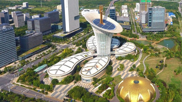 武汉光谷未来科技城的仿生建筑“马蹄莲”。 记者高勇 摄