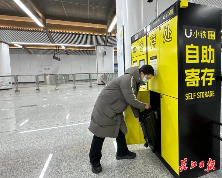 站内,记者发现一名年轻人正在从自助行李寄存柜取行李箱。交谈得知,他老家郑州,在宜昌上大学,坐高铁特意在武汉停留一天。早上他到武汉站后,先把行李箱存入19号线地铁寄存柜,在武汉游玩了一天,晚上再坐高铁去宜昌。