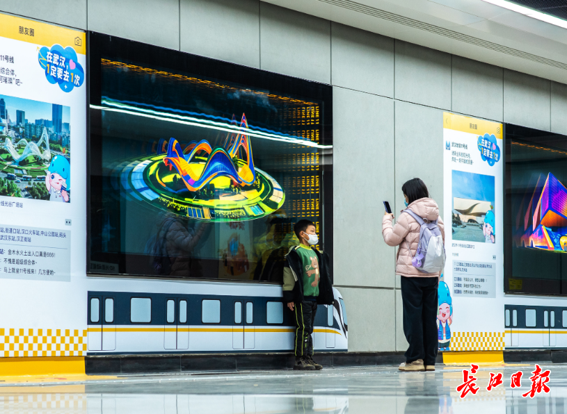 11号线光谷四路站,家长带孩子打卡。 记者陶常宁 摄