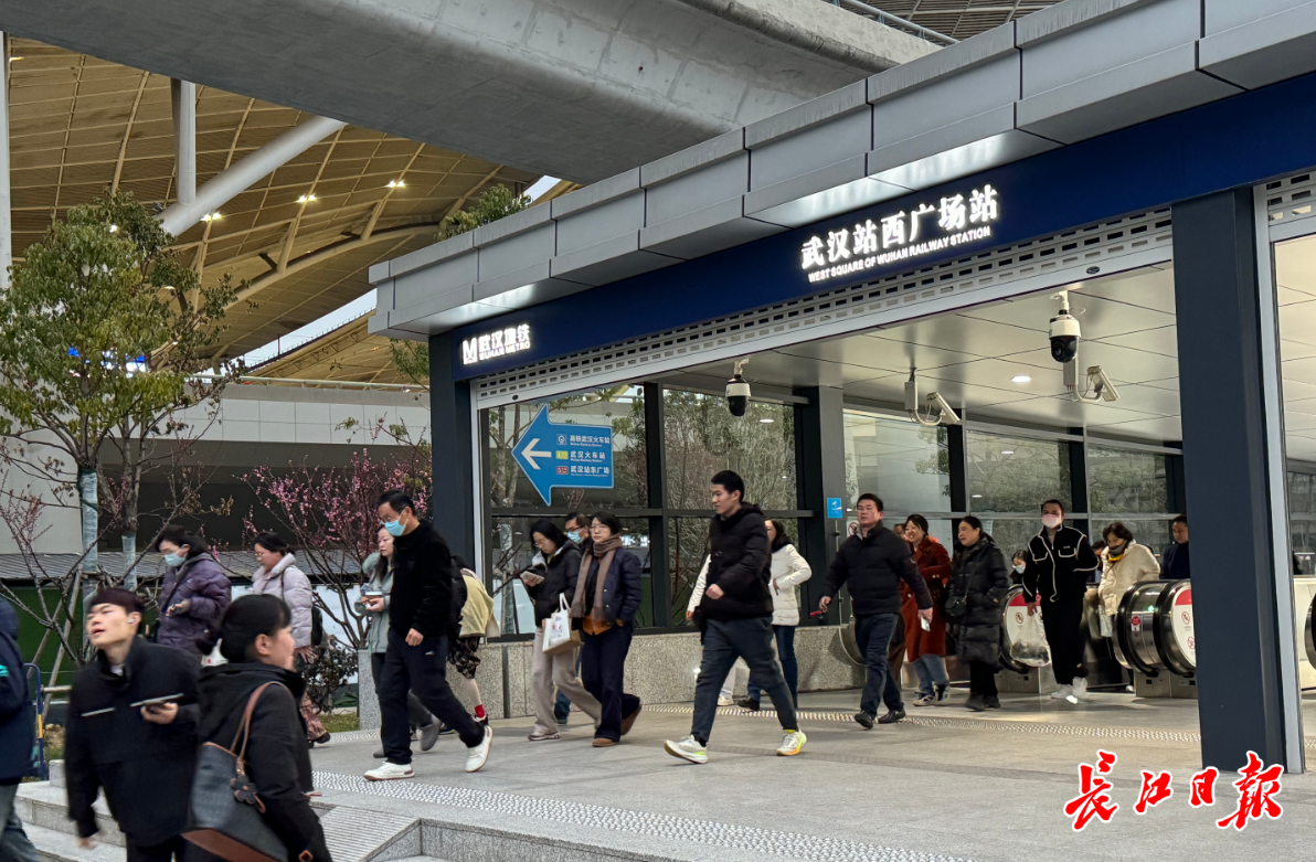 19号线武汉站西广场站,进出乘客络绎不绝。 记者陶常宁 摄