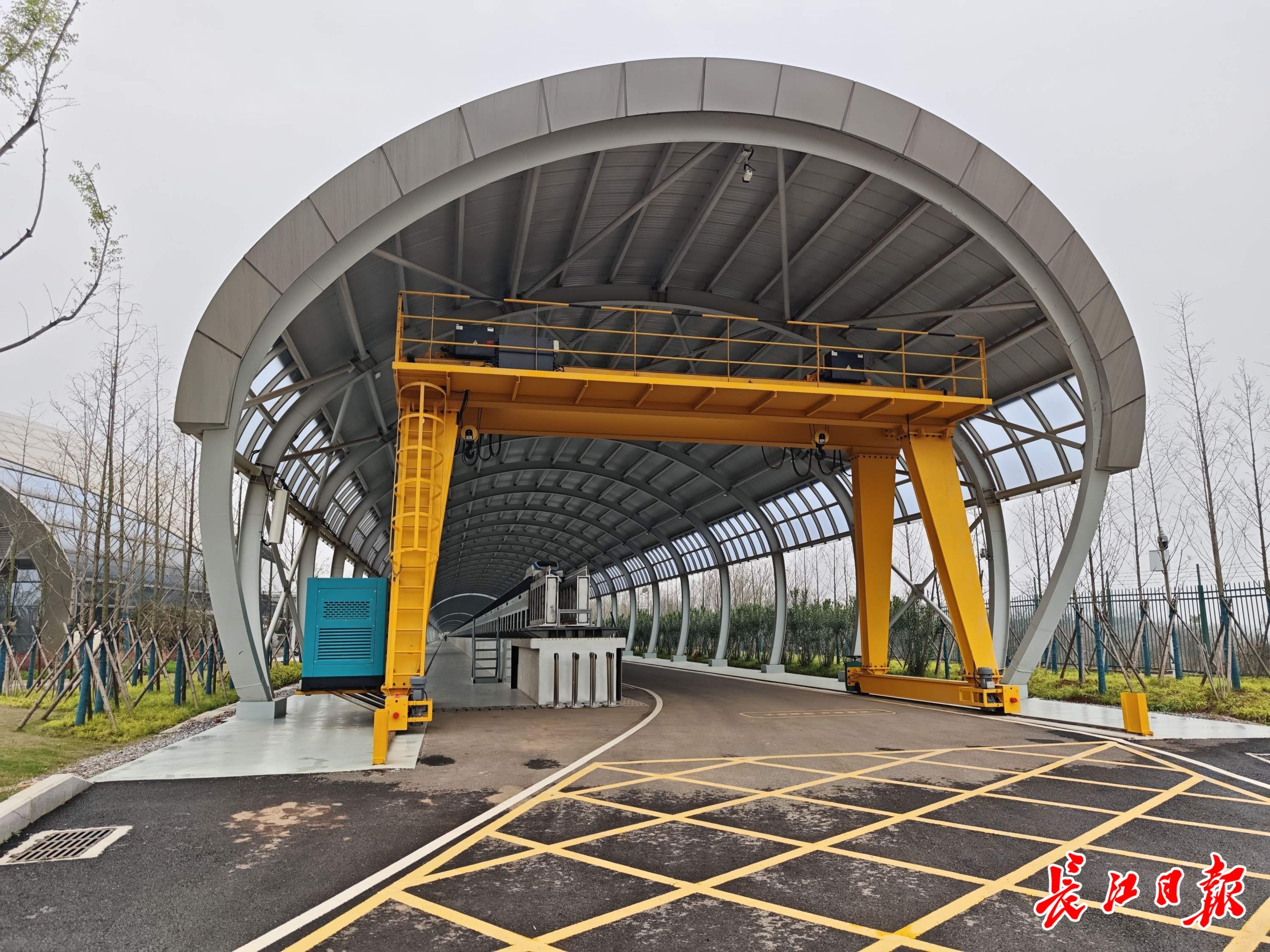 而能装下这两件创下世界“最快”“最大”纪录的科学装置,究竟是怎样的“超级厂房”?4月3日,长江日报记者随东湖实验室项目工程总承包牵头单位——中信建筑设计研究总院有限公司(简称“中信设计”)项目执行经理万亚兰和空泡水洞本体装置项目经理艾威,来到位于牛山湖畔的湖北东湖实验室一期拓展区,探访两座“国之重器”的“家”。